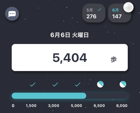 ステラウォークの場合は、1500歩・3000歩・5000歩・6500歩・8000歩