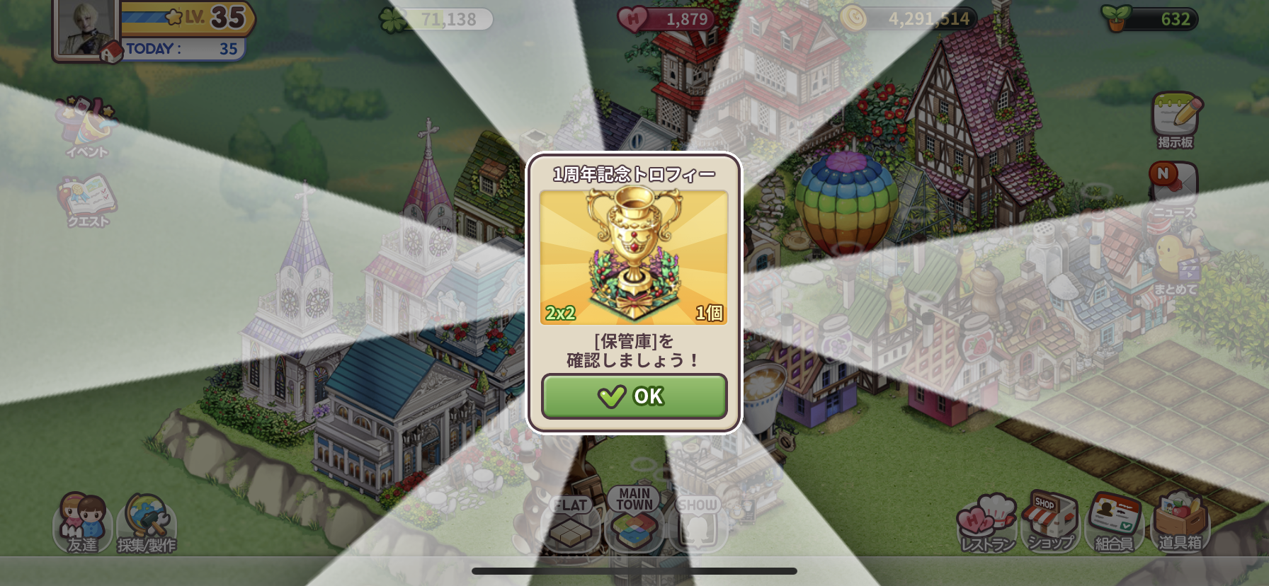 | 15 | パーティーハットを50個販売 | 25 | 1周年記念トロフィー | |||