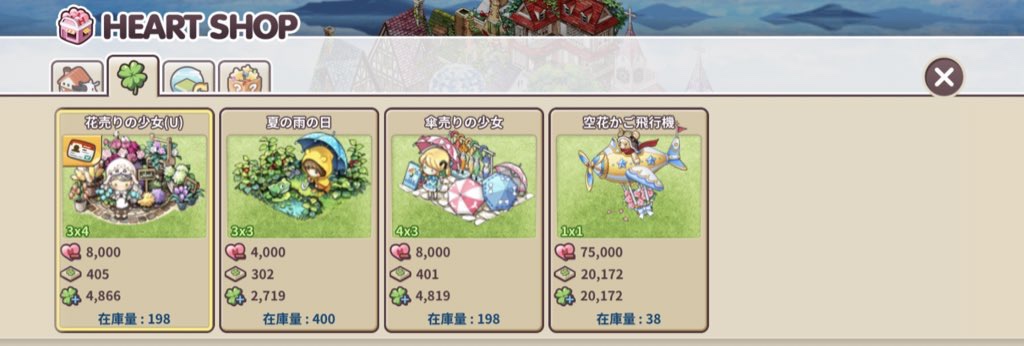 ログイン可能になると同時にハートショップに突撃