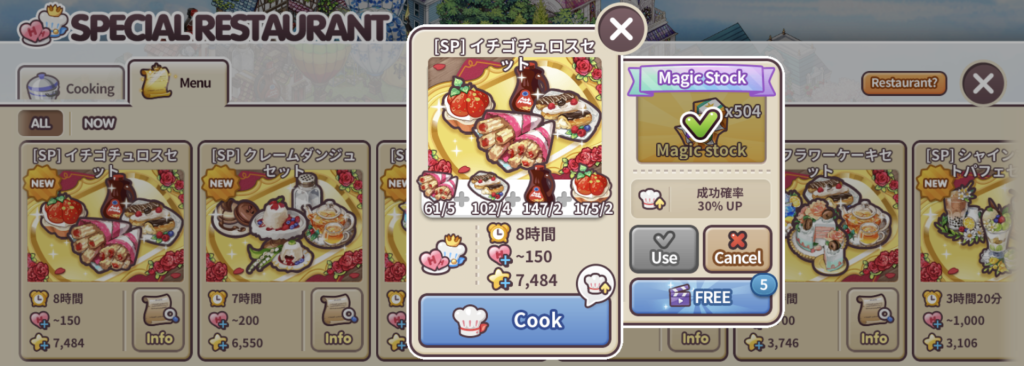 スペシャルレストランに限っては安い施設を使った料理のほうが効率がよくなります(苦笑)