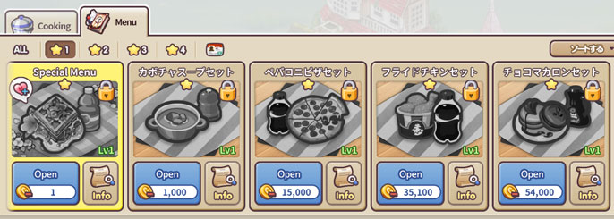 ★3メニューにも解放条件があって、★2のメニュー2つのレベル上げが必要です。