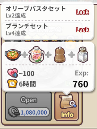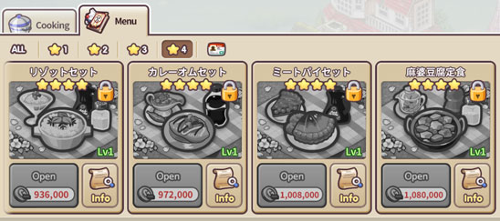 つまり、★4メニューを作れるようになるには、6種類のメニューを要求されたレベルまで上げる必要があります。
