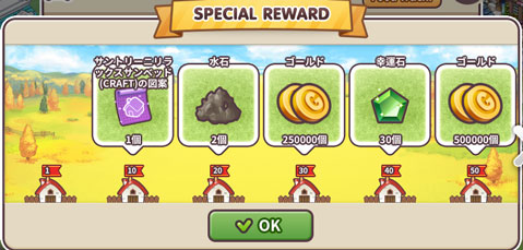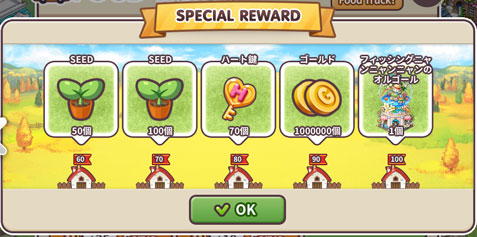 タウン40:幸運石30 タウン50:500,000G タウン60:50SEED タウン70:100SEED タウン80:ハート鍵70