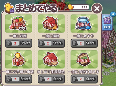 ひよこは収穫や工場のセット、水やりなどをまとめてすませてくれる助手アイテムですが、フードトラックの納品に使えます。
